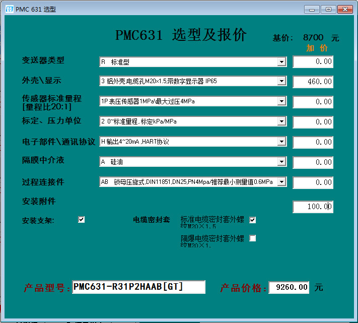 PMC631压力变送器该型号是PMC731型标准智能压力变送器的变形产品。采用陶瓷传感器,加装焊接隔离膜片结构。其过程连接方式为内螺纹锁母压旋连接式,便于拆装和清洗,与介质接触部分材料为不锈钢,适用于···